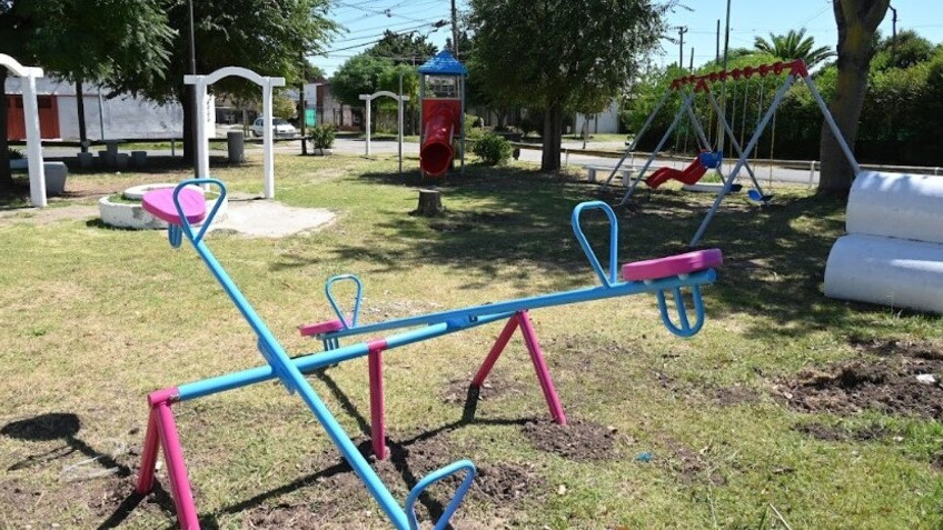 Por último, se colocaron dos juegos infantiles: un pórtico de hamacas, y un sube y baja. Ambos juegos se suman al mangrullo con tobogán, ya existente en la plaza.