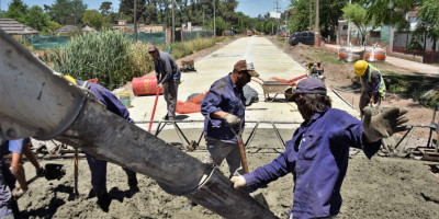 Avanzan las obras de repavimentación del acceso al barrio Los Laureles