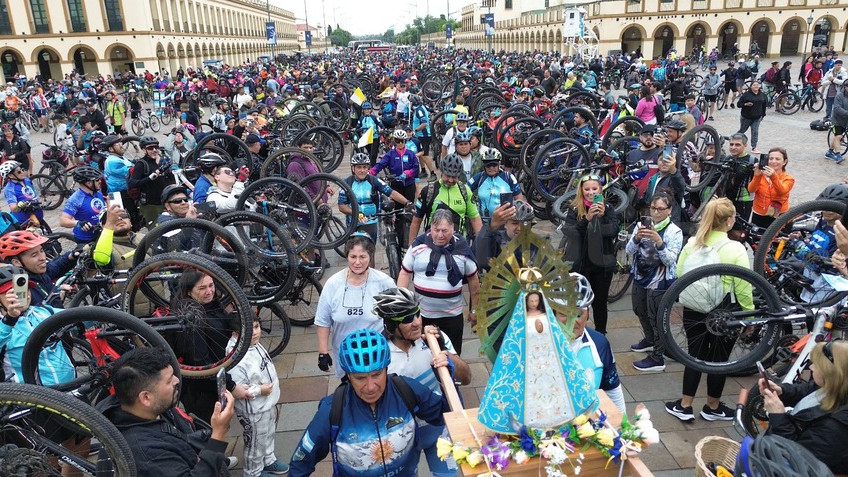 Durante una mañana lluviosa y con una gran convocatoria, el pasado domingo se realizó una nueva edición de la Peregrinación en Bicicleta a Luján, en la que se calcula que participaron alrededor de diez mil personas.